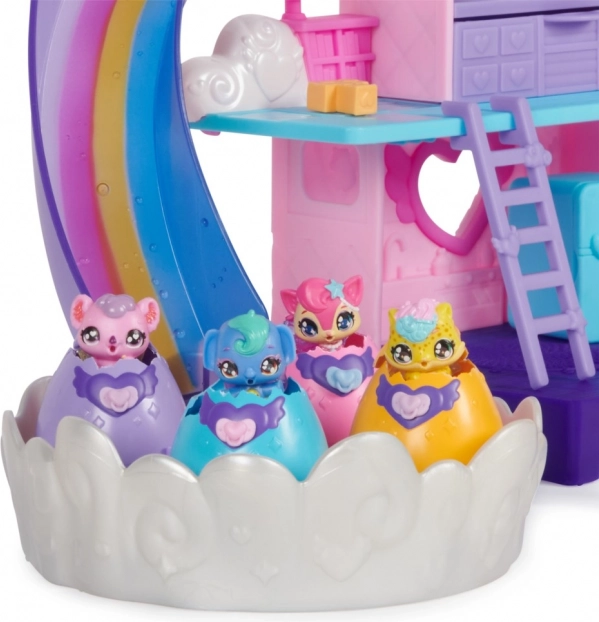 Hatchimals zestaw zabawowy Tęczowy świat zaprasza do magicznego świata pełnego fantazji. Pozwól zwierzakom wykluć się i troszcz się o nie w tym niesamowitym zestawie do zabawy.