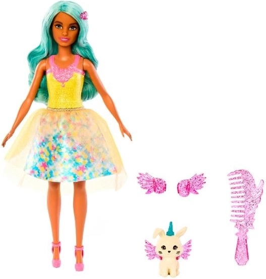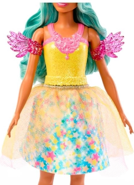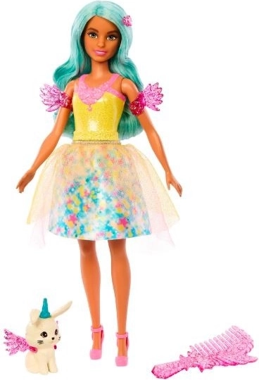 Lalka Teresa z edycji Barbie A Touch of Magic przynosi dzieciom czarodziejską zabawę pełną kolorów, blasku i wyobraźni. Ma turkusowe włosy, które łatwo czesać dołączonym grzebieniem, oraz nosi efektowny strój z nadrukiem i delikatną, półprzezroczystą warstwą. Błyszczące mankiety ze skrzydełkami nadają stylowi baśniowy charakter i podkreślają jej magiczny wygląd.