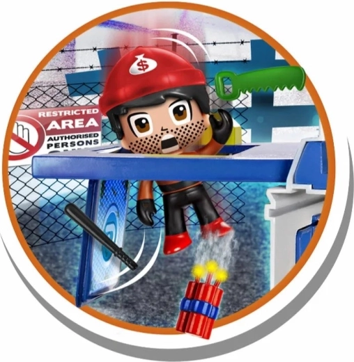Zestaw zawiera 2 figurki Pinypon (ok. 7 cm) oraz tematyczne rekwizyty do scen pościgów, ucieczek i aresztowań.