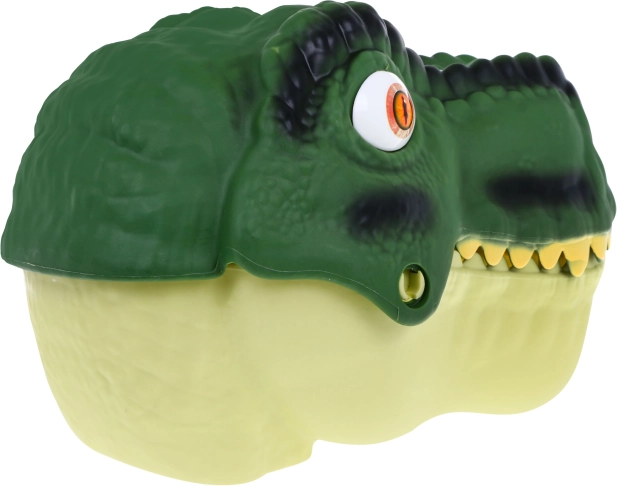 Duża głowa dinozaura służy jako trwałe schowek z łatwym otwieraniem i uchwytem. Po zabawie wszystko szybko uporządkujesz i wygodnie zabierzesz ze sobą.
