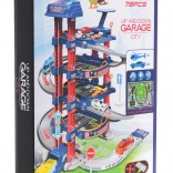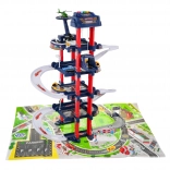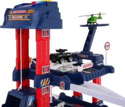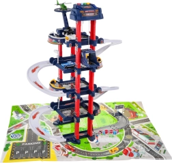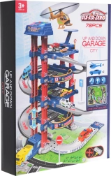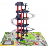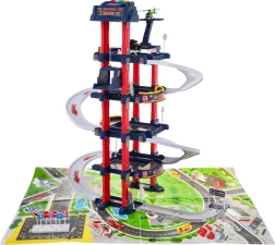 Wielopoziomowy parking oferuje miejsca postojowe, stację benzynową, podnośnik dla aut oraz lądowisko dla helikopterów. Panel sterowania z kolorowymi przyciskami obsługuje windę i uruchamia efekty: czerwony przycisk opuszcza windę w dół, żółty podnosi ją do góry. Niebieski przycisk odtwarza dźwięki policji, straży pożarnej, karetki, uruchamiania silnika oraz strzałów, zielony aktywuje klakson. Na panelu migają niebieskie i czerwone światła, które potęgują atmosferę zabawy.