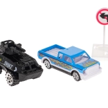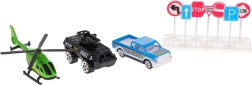 Zestaw uzupełnia duża mata z drogami poszerzająca świat zabawy oraz dwa metalowe autka w skali 1:64. Dzięki intuicyjnej obsłudze zabawka jest odpowiednia dla dzieci od 3 lat i wspiera motorykę, wyobraźnię oraz podstawy wychowania komunikacyjnego.
