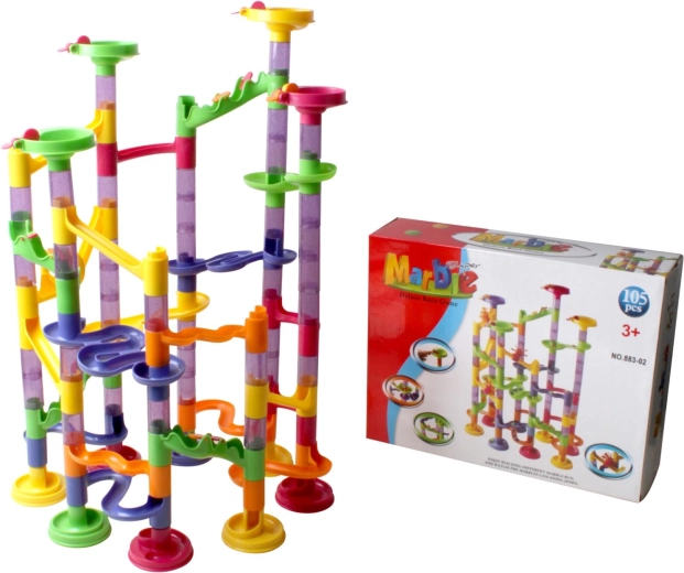 Kolorowy i trwały tor kulkowy dla dzieci od 3 lat, który rozwija kreatywność i zdolności manualne. Idealny do indywidualnej konstrukcji i obserwacji ruchu kulek.