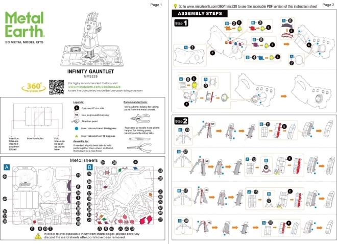 Model wykonany jest ze stalowych blaszek o wymiarach 11 x 11 cm, które po złożeniu tworzą detaliczną i fascynującą replikę Rękawicy Nieskończoności. Autentyczny wygląd zapewnia grawerowanie laserowe. W opakowaniu znajdziesz 3 stalowe blaszki z elementami oraz instrukcję montażu. Narzędzia nie są dołączone.