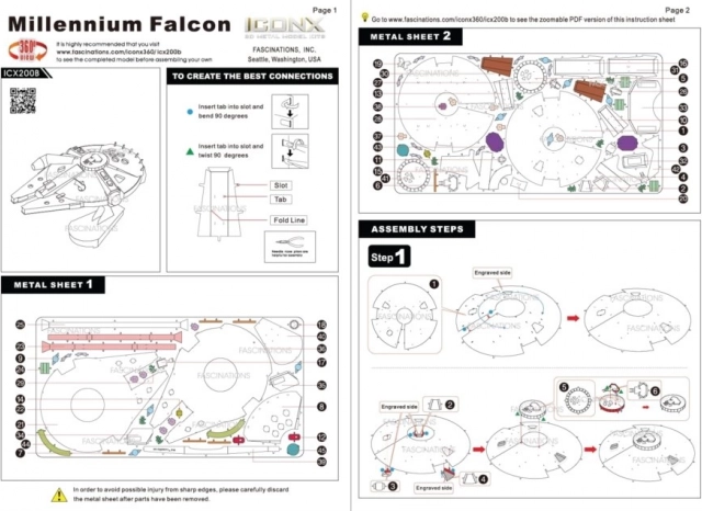 Wyjmij poszczególne elementy z metalowych arkuszy; w razie potrzeby użyj małych cążek do cięcia (nie są dołączone). Elementy łączy się ze sobą za pomocą zamków tworzonych przez zaczep (języczek) i otwór. Zegnij języczek przy użyciu małych, cienkich szczypiec (nie są dołączone) i stopniowo połącz wszystkie zamki, aż powstanie bardzo realistyczne, mistrzowskie dzieło!