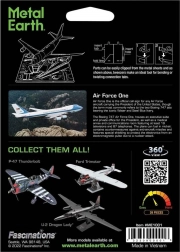 Zestaw do stworzenia fascynującego metalowego modelu 3D. Budowa łamigłówki METAL EARTH wymaga cierpliwości i zręcznych rąk. Efekt końcowy w pełni wynagradza włożony wysiłek. Miniaturowe repliki są imponującą i przyciągającą wzrok dekoracją. Z kwadratowych arkuszy stali pod Twoimi rękami powstają szczegółowo dopracowane, fascynujące modele. Autentyczny wygląd łamigłówki 3D METAL EARTH osiągnięto dzięki precyzyjnemu grawerowaniu laserowemu. Narzędzia nie są częścią zestawu. PROCEDURA PRACY: Poszczególne elementy wyjmij z metalowych arkuszy; w razie potrzeby użyj małych cążek (nie wchodzą w skład zestawu). Elementy łączy się za pomocą zamków tworzonych przez zaczep (języczek) i otwór. Zegnij języczek przy pomocy małych, cienkich szczypiec (nie wchodzą w skład zestawu) i stopniowo połącz wszystkie zamki, aż powstanie bardzo realistyczne mistrzowskie dzieło!