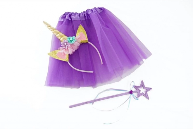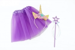 Rozwiń wyobraźnię z magicznym zestawem Jednorożec: zawiera fioletową spódniczkę tutu, opaskę z błyszczącym rogiem oraz gwiezdną różdżkę. Idealny na karnawał, przyjęcia i codzienną zabawę, dla dzieci od 3 lat.