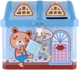 Ta metalowa skarbonka w kształcie domku jest idealna na pierwsze kroki w prawidłowym gospodarowaniu pieniędzmi. Dzięki zamykaniu na kluczyk odłożone środki pozostaną bezpieczne, a wrzut na górnej stronie ułatwia regularne oszczędzanie. Kolorowe ilustracje i zabawny design motywują dzieci do odkładania drobnych monet każdego dnia.