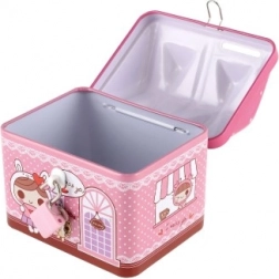 Skarbonka wykonana jest z trwałego metalu, więc wytrzyma codzienne użytkowanie w dziecięcym pokoju. Kompaktowy wymiar 12 × 11 cm świetnie pasuje na półkę czy biurko, a jednocześnie oferuje wystarczająco dużo miejsca na oszczędności.