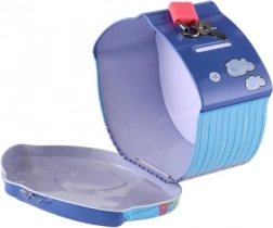 Oszczędzone monety pozostaną bezpieczne dzięki metalowemu zamkowi i solidnemu zamykaniu. Idealna na pierwsze kieszonkowe.