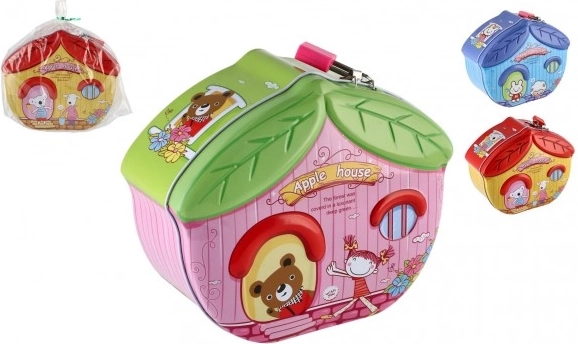 Urocza metalowa skarbonka w kształcie domku z motywem „Apple house” pomoże dzieciom uczyć się gospodarowania pieniędzmi i liczenia. Ma bezpieczny zamek z kluczykiem, praktyczny otwór na monety oraz wytrzymałą metalową konstrukcję w kilku wesołych kolorach, które dzieci pokochają.