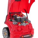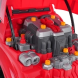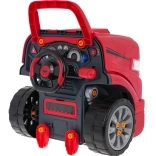 | . | Niesamowity, dobrze wyposażony, interaktywny zestaw konstrukcyjny małego mechanika dla dzieci od 3 lat. Zestaw składa się z kabiny ciężarówki z podnoszoną maską, kierownicy, deski rozdzielczej oraz praktycznego uchwytu i kółek do przenoszenia. Pod maską ciężarówki znajduje się wiele części do skręcania i rozkręcania. Twoje dziecko będzie mogło wykonywać naprawy silnika, świec zapłonowych, a nawet kół. Na desce rozdzielczej znajduje się przycisk uruchamiania pojazdu z zapłonem silnika i dźwiękami jazdy, kierownica z klaksonem oraz alarmowy brzęczyk. Pod kierownicą znajduje się schowek, w którym można przechowywać wszystkie potrzebne narzędzia, śrubki i guziki. Zestaw jest dodatkowo wyposażony w autopilota, który umożliwia sterowanie modułami świetlnymi (świecące reflektory i górna część silnika) oraz dźwiękowymi (dźwięk otwierania i zamykania auta, klakson). Zasilanie: 3 x AA 1,5 V – auto (brak w zestawie), CR2025 3 V – pilot zdalnego sterowania (w zestawie). .Cechy zestawu: .otwierana maska, .- kierownica obraca się i posiada klakson, .- schowek na narzędzia pod kierownicą, .- wiele obrotowych elementów pod maską, .- możliwość wymiany świec zapłonowych, sprawdzania poziomu oleju, naprawy kół, .- automatyczna skrzynia biegów z dźwignią zmiany biegów, .- funkcje świetlne – migające reflektory, przycisk startu i uruchamiania silnika, przycisk awaryjny, silnik, .- funkcje dźwiękowe – dźwięki uruchamiania pojazdu, dźwięki jazdy, dźwięki cofania, klakson, .- składany mini lewarek do odkręcania i przykręcania kół, .- autopilot z przyciskami zamykania, otwierania, klaksonu, z efektami dźwiękowymi i świetlnymi, .- wygodny uchwyt do przemieszczania zabawki. . |