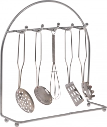 Praktyczny stojak utrzymuje trzepaczkę, chochlę, łyżkę cedzakową, łopatkę i inne akcesoria przejrzyście zawieszone. Dzieci łatwo uczą się porządku i właściwych nawyków w kuchni.