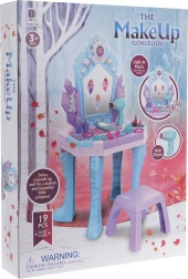 W skład zestawu wchodzi stołeczek, biżuteria i akcesoria kosmetyczne – wszystko bezpieczne i dopasowane do dziecięcych rączek. Praktyczne przegródki z przodu i po bokach toaletki utrzymają wszystkie skarby na swoim miejscu.