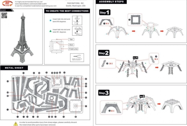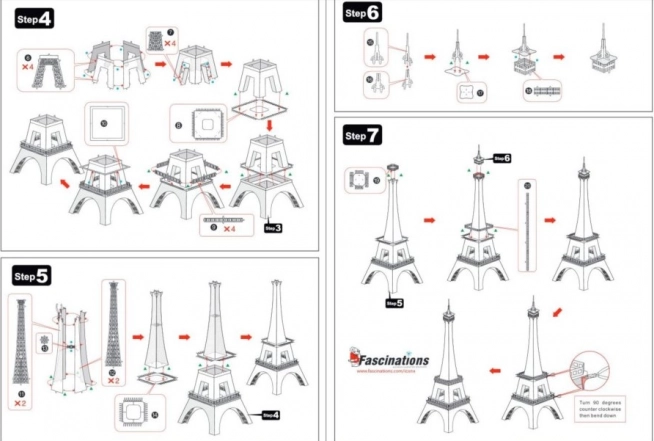 Ten wspaniały model Wieży Eiffla o wymiarach około 15,3 x 5,1 x 5,1 cm to nie tylko świetny dodatek, ale także interesujące wyzwanie dla entuzjastów i kolekcjonerów. Zalecany wiek do układania modelu to od 14 lat.