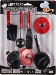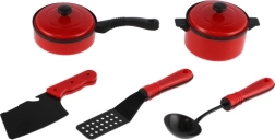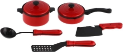 Dziecięcy zestaw przyborów kuchennych w czarno-czerwonym wykonaniu jest idealny dla małych kucharzy. Ten zestaw oferuje imitacje prawdziwego sprzętu kuchennego, który zachwyci każde dziecko i zachęci jego kreatywność.