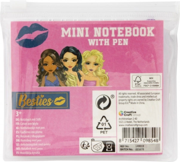 Ciesz się zabawą i kreatywnością z mini notesikiem Besties, który zawiera spiralny notes i stylowy ołówek w praktycznym przezroczystym etui. Idealny prezent dla dzieci i młodych dorosłych.