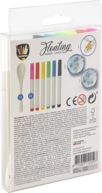 Dzięki temu zestawowi pływających markerów zamienisz codzienne chwile w niezwykłe przeżycia. Zawiera markery w kolorach różowym, czerwonym, żółtym, zielonym, niebieskim i czarnym dla maksymalnej kreatywności. Wystarczy narysować kształt na suchej łyżce, a po 30 sekundach zanurzyć ją w wodzie – pływający obrazek natychmiast zacznie się unosić.