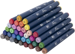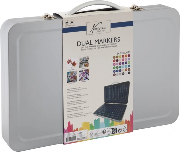 Ten uniwersalny zestaw dwustronnych markerów to świetny wybór do ilustracji, szkicowania i letteringu. Każdy marker oferuje dwie strony do różnych stylów linii, dzięki czemu łatwo przełączysz się między detalicznymi pociągnięciami a wypełnianiem większych płaszczyzn. Metalowa walizka chroni zawartość, utrzymuje porządek i ułatwia transport.