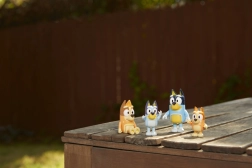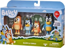 Cztery ulubione postacie z serialu BLUEY razem – gotowe do odtwarzania scen i tworzenia nowych historii.