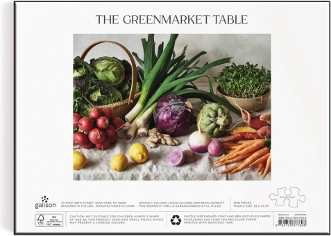 GALISON Greenmarket Table puzzle 1500 elementów. Druk premium, matowe wykończenie, materiały z recyklingu, solidne pudełko, motyw autorstwa Belli Karragiannidis.