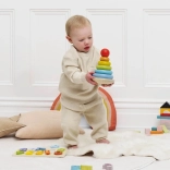 Ta stylowa wieża do nakładania z 6 kolorowymi krążkami i górną kulką to idealna pierwsza zabawka edukacyjna dla dzieci od 18 miesięcy. Dzieci naturalnie ćwiczą sortowanie według rozmiaru, koloru i kształtu, rozwijają cierpliwość oraz logiczne myślenie. Kołysząca się podstawa dodaje elementu zabawnego wyzwania i motywuje do kolejnych prób.