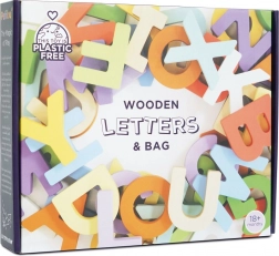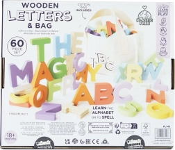 - 60 drewnianych liter, płócienna/bawełniana torba
