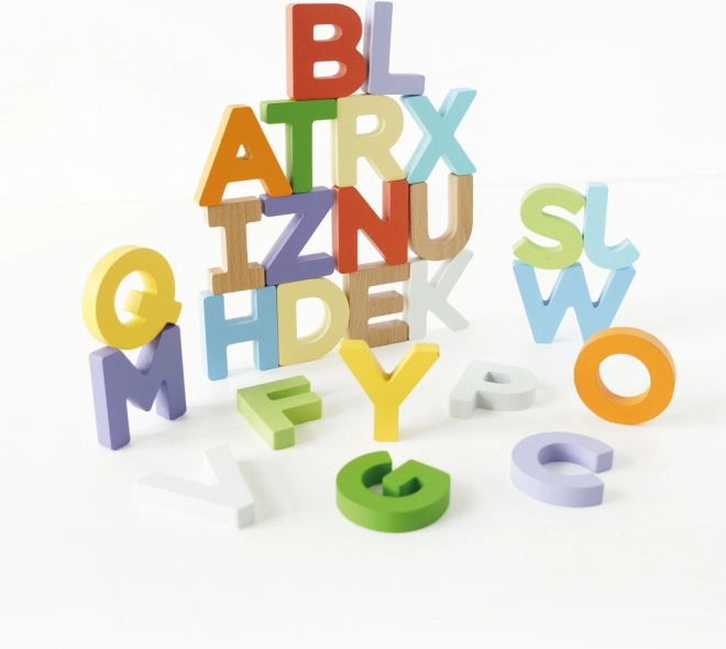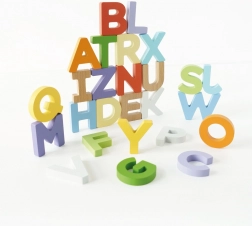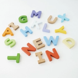 Różnorodny zestaw liter w żywych kolorach wspiera naukę alfabetu, rozwój słownictwa oraz motorykę małą.