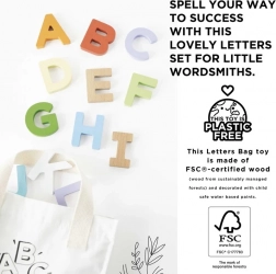 Ten wysokiej jakości edukacyjny zestaw daje dzieciom radość z odkrywania liter i układania prostych słów. Trwałe drewniane litery w intensywnych kolorach zachęcają do zabawy, sortowania i tworzenia, a płócienna torba ułatwia przechowywanie wszystkich elementów po zabawie.