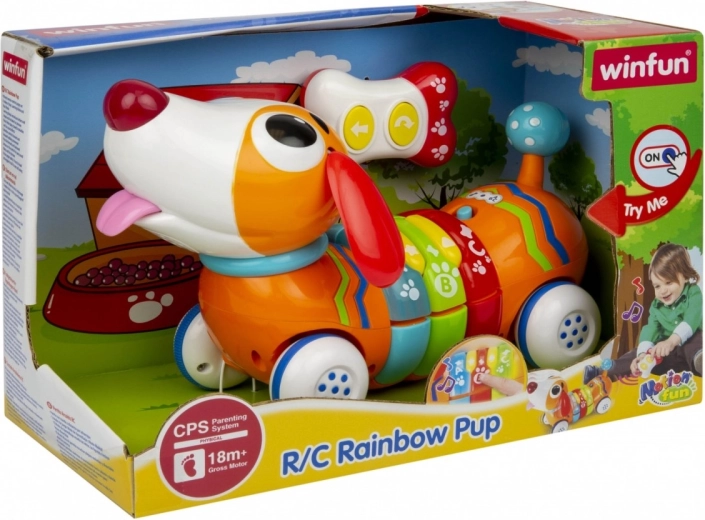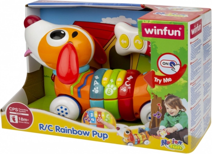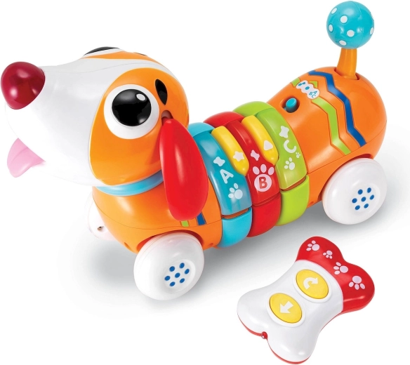 Burek to piesek na pilot. Pilot w kształcie kostki ma 2 przyciski: jazda do przodu oraz jazda do tyłu poprzez obrót. Obsługa jest więc łatwa nawet dla małego dziecka.
