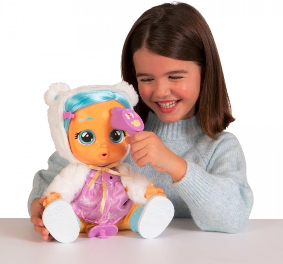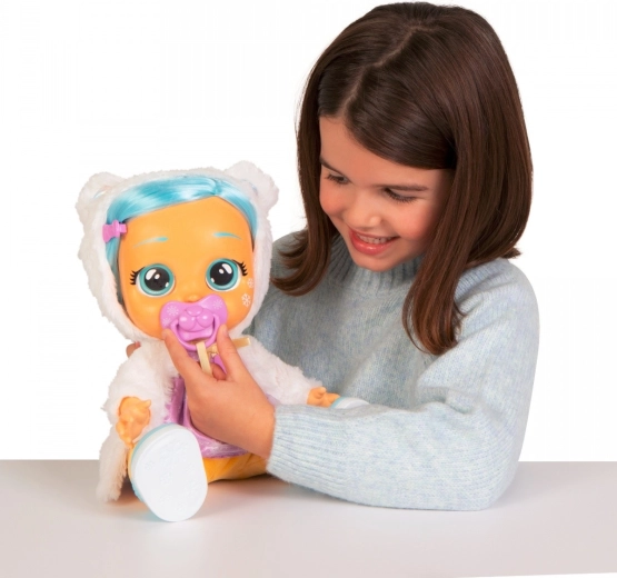 Kristal płacze prawdziwymi łzami, a bez smoczka wydaje dźwięki, które naśladują doświadczenie opieki nad dzieckiem.