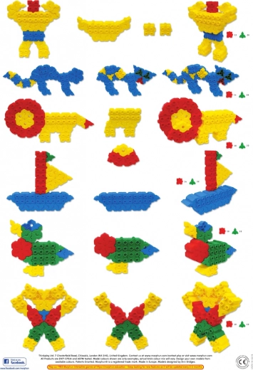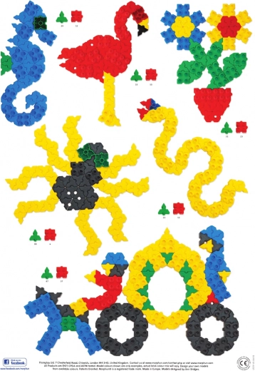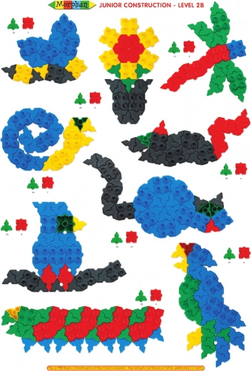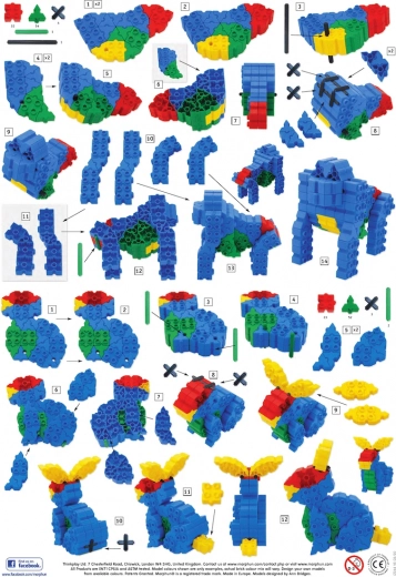Dzięki dwustronnym instrukcjom w formacie A3 dzieci mogą budować różne modele, takie jak zwierzątka, kwiaty i inne.