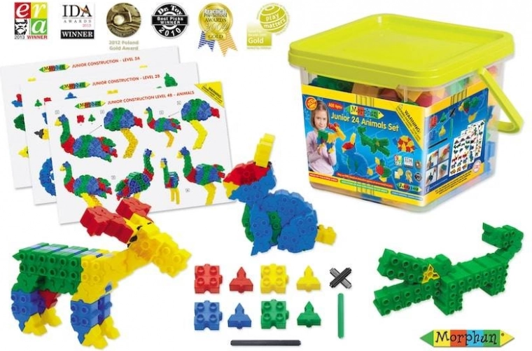 Odkryj świat kreatywnej zabawy z klockami konstrukcyjnymi Morphun Junior. Ten rozbudowany zestaw zawiera 252 elementy o różnych kształtach i kolorach, które pozwalają dzieciom łatwo tworzyć wiele różnorodnych modeli. W opakowaniu znajdują się trzy kolorowe, dwustronne instrukcje w formacie A3, oferujące proste kroki do budowy rozmaitych konstrukcji.
