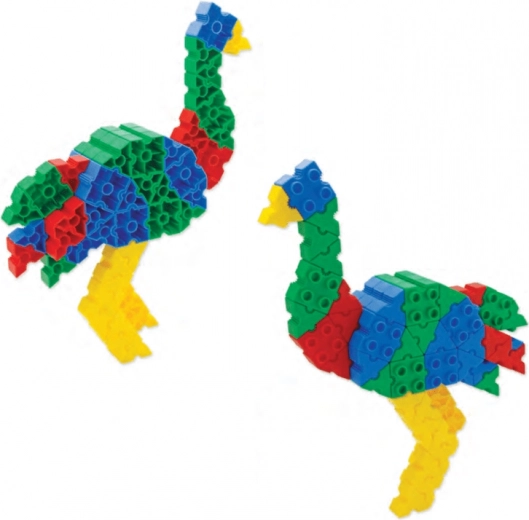 Zestaw zawiera 252 sztuki różnokolorowych klocków, które pozwalają dzieciom budować wiele różnych modeli.