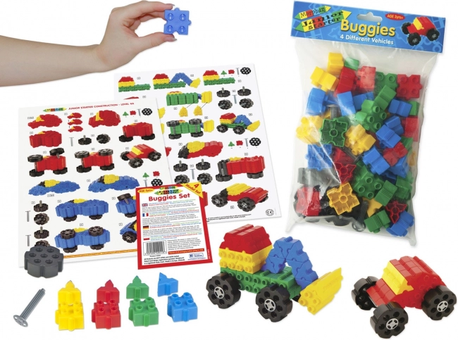 Klocki umożliwiają dołączenie solidnych kół do stworzonych modeli, co pozwala na pojazdy jedno- lub dwuosiowe. Warto zauważyć, że nie można zbudować wszystkich modeli jednocześnie, a kolory klocków mogą różnić się od tych podanych w instrukcjach.