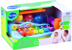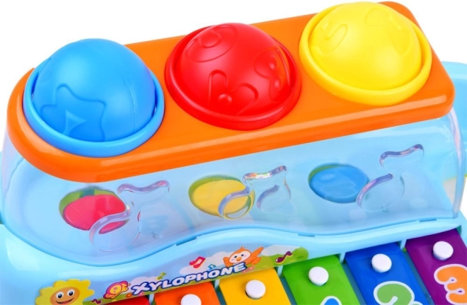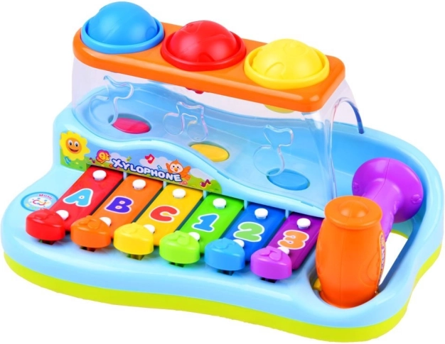 Dzieci mogą uderzać młoteczkiem w klawisze lub wkładać piłeczki do otworów, dzięki czemu z zabawki płyną kolejne przyjemne melodie. Klawisze są oznaczone cyframi i literami, co dodatkowo pomaga dzieciom uczyć się i zapamiętywać kolejność uderzeń. Ten ksylofon to doskonały sposób na wspieranie ciekawości i zainteresowania światem u maluchów.