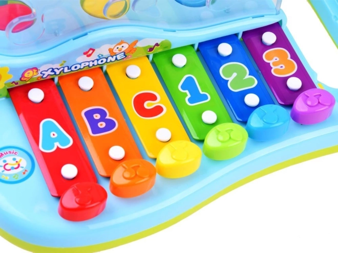Ksylofon posiada klawisze oznaczone literami i cyframi, które wspierają wczesną naukę dzieci.