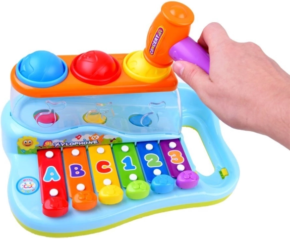 Zabawka poprawia zdolności manualne, rozpoznawanie dźwięków oraz rozwój słuchu muzycznego u dzieci.