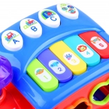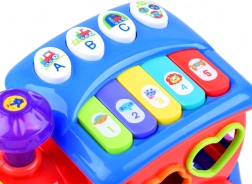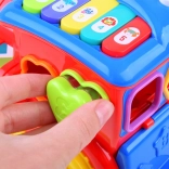 Zawiera zestaw kolorowych klocków o różnych kształtach z odpowiadającymi im otworami, co rozwija logikę i motorykę małą.