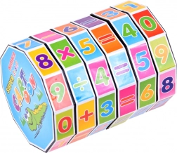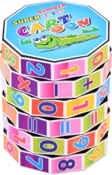 Ten matematyczny walec to świetna pomoc dla dzieci, które uczą się liczb i podstawowych działań. Obrotowe segmenty z liczbami i symbolami umożliwiają układanie i sprawdzanie prostych zadań, dzięki czemu dzieci w łatwy i przyjemny sposób utrwalają materiał.