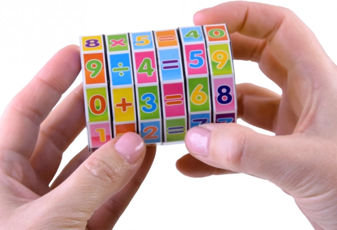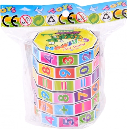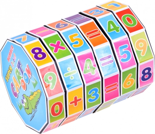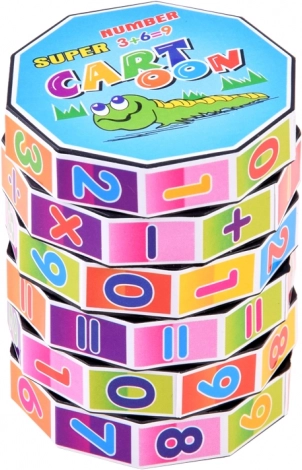 Kolorowa edukacyjna zabawka w kształcie walca z obrotowymi pierścieniami pomaga dzieciom ćwiczyć dodawanie, odejmowanie, mnożenie i dzielenie. Kompaktowa i zabawna pomoc rozwija logiczne myślenie, motorykę małą i wspiera naukę poprzez zabawę.
