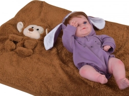Uroczy dziecięcy kocyk i pluszowa przytulanka w jednym! Ten mięciutki kociak w stylu małpki w modnym odcieniu moka zapewnia przyjemne ciepło, delikatność dla wrażliwej skóry oraz łatwą przemianę w zabawkę w kilka sekund. Idealny do łóżeczka, wózka i w podróży.