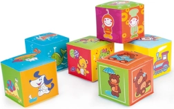 Wesołe ilustracje zwierząt i przedmiotów na każdej stronie klocków naturalnie skłaniają dziecko do nazywania i poznawania świata. Miękkie wykonanie jest delikatne dla małych rączek i ząbków, klocki są lekkie, łatwe do chwytania i bezpiecznie układają się w wieże.