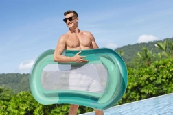 Materac Bestway łączy komfort i funkcjonalność dla doskonałego wypoczynku na wodzie. Oddychająca siateczka pośrodku przyjemnie chłodzi ciało wodą, a podwyższone dmuchane boki i zintegrowana poduszka zapewniają wygodne podparcie całego ciała.