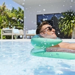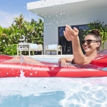 Zintegrowana dmuchana poduszka zapewnia podparcie karku i głowy, umożliwiając długi, niczym niezakłócony relaks na wodzie.