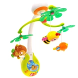Ta wesoła karuzela z pozytywką zapewnia dziecku stymulację wzrokową, słuchową i dotykową. Zawieszane figurki w kształcie pszczółki, małpki i ptaszka delikatnie się obracają, a przyjemne melodie i subtelne światełko tworzą kojącą atmosferę sprzyjającą łatwemu zasypianiu.