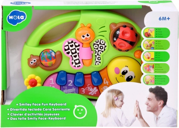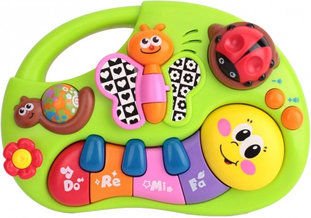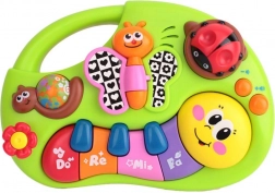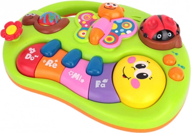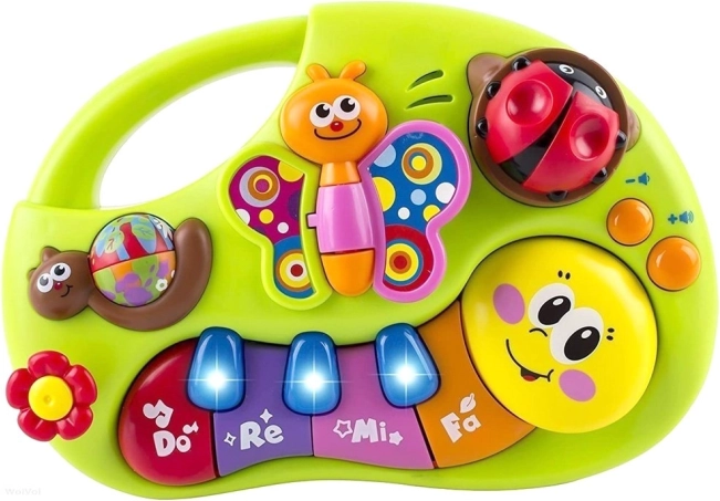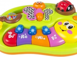 Interaktywny fortepian dla dzieci, który swoimi żywymi kolorami stymuluje wzrok i zachęca do zabawy. Wesołe melodie budzą zainteresowanie muzyką i uczą rozróżniać różne tony oraz dźwięki od najmłodszych lat. Efekty dźwiękowe i świetlne zapewniają dzieciom zabawę i radość.