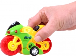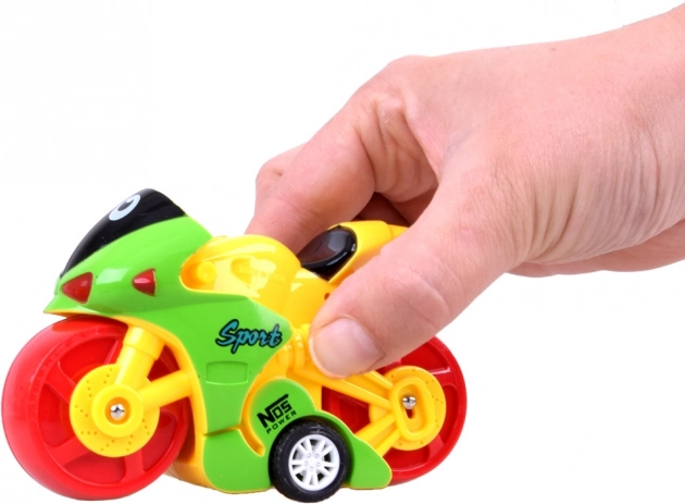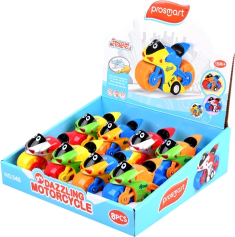 Wyraziste kolory i bezpieczna konstrukcja motocykla zapewniają, że zabawka jest nie tylko wizualnie atrakcyjna, ale także bezpieczna dla dzieci. Wymiary produktu to 11 cm x 7 cm x 4 cm. Każdy motocykl jest wysyłany losowo w jednej z dostępnych wersji kolorystycznych.