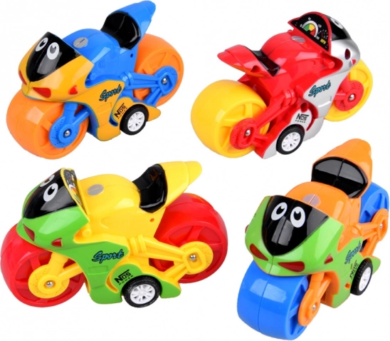 Motocykl jest dostępny w żywych kolorach i wyposażony w wesołe elementy rysunkowe, które przyciągną uwagę każdego dziecka.