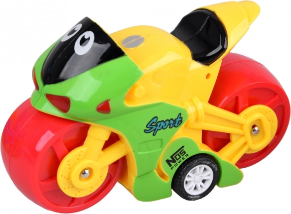 Ten wesoły, kolorowy motocykl jest idealny dla małych dziecięcych rączek. Dzięki swojemu kompaktowemu rozmiarowi oferuje łatwą obsługę, co pozwala dzieciom zabrać zabawkę na spacer lub do przedszkola.